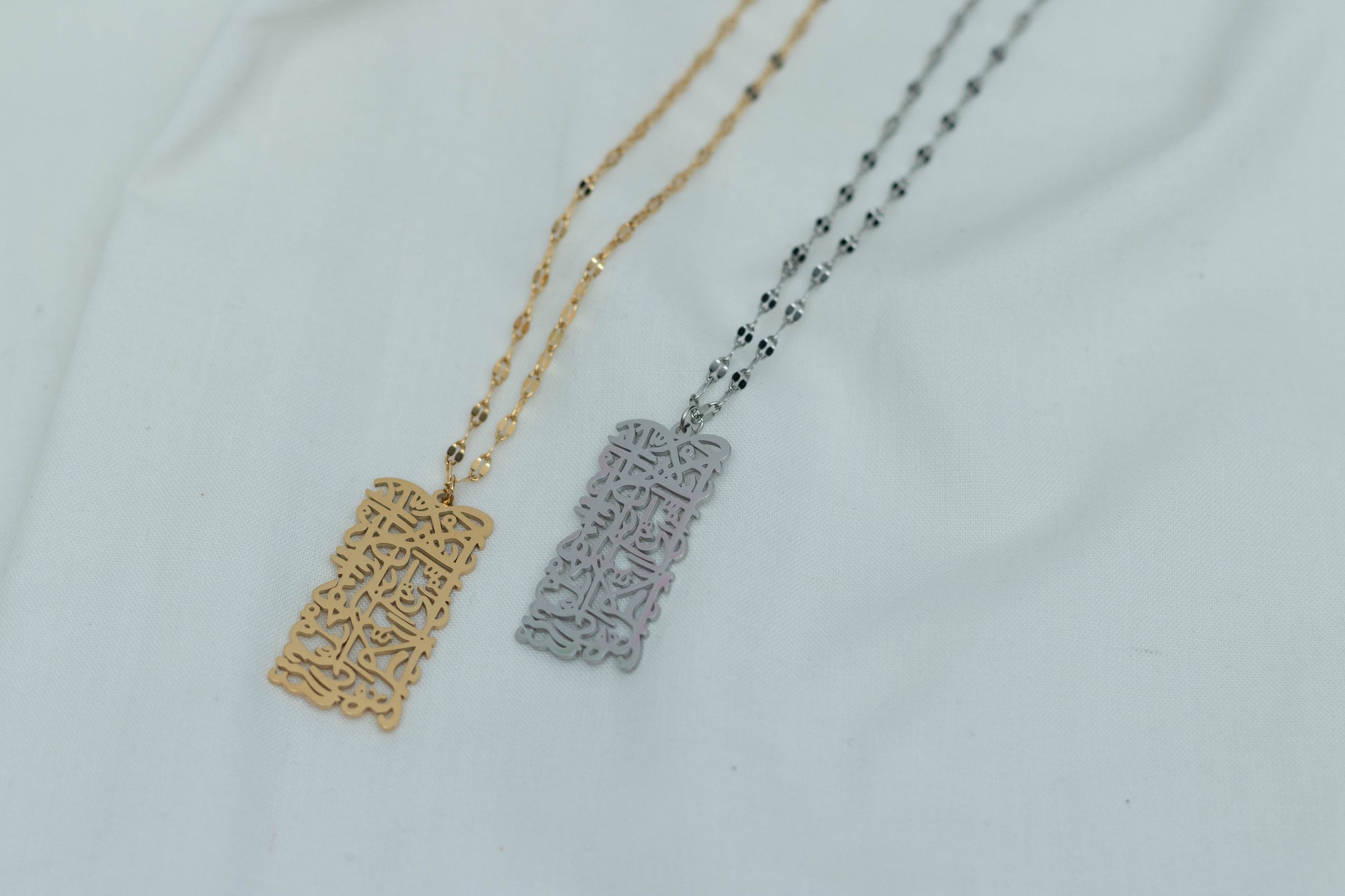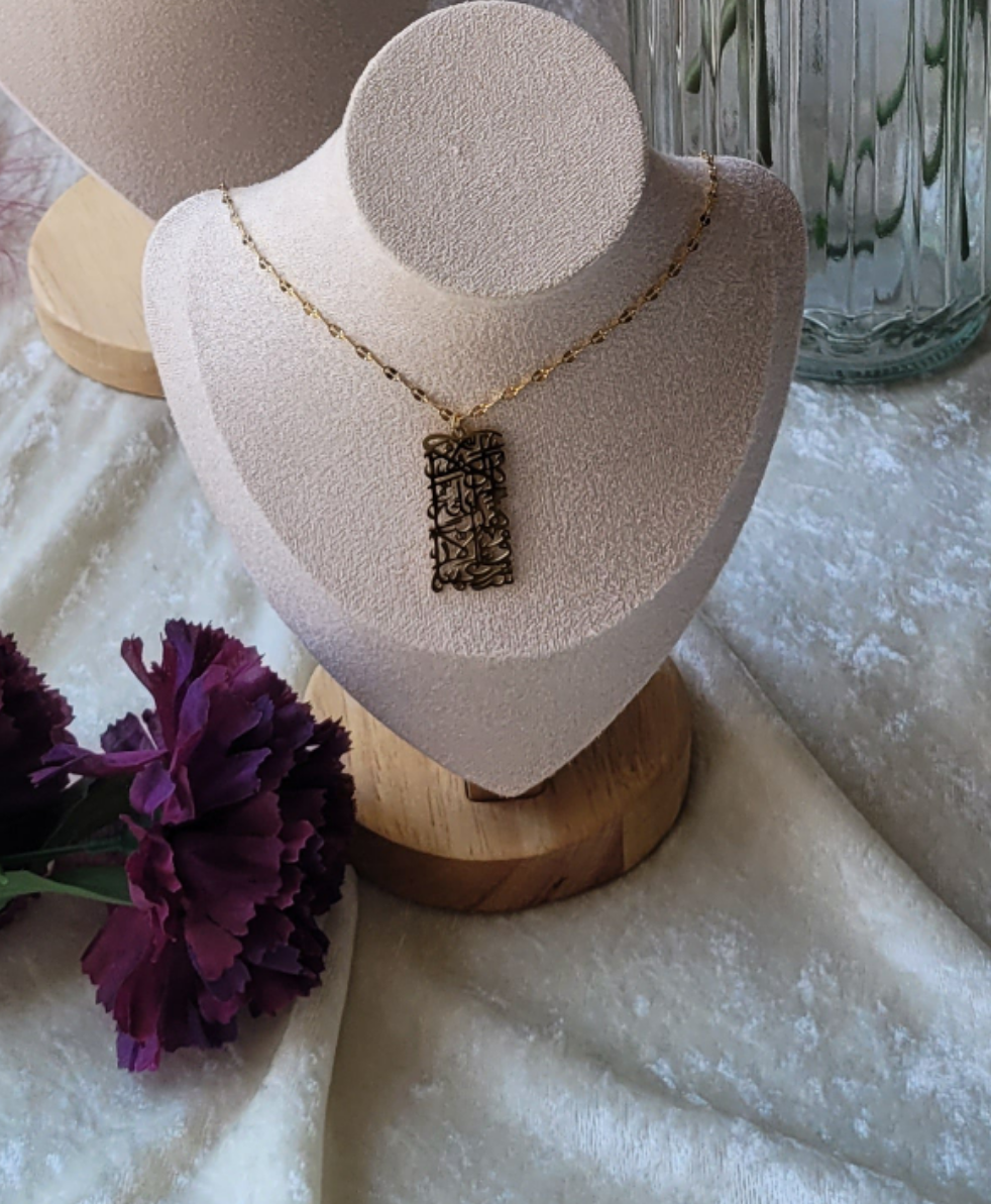 Looking for a gentle reminder? Look no further than this stylish calligraphy "Allah does not burden a soul beyond that it can bare" necklace! Sparkling in silver or gold, this necklace is sure to make you shine—and reaffirm the power of faith in Allah. Shine on, sweet sister!